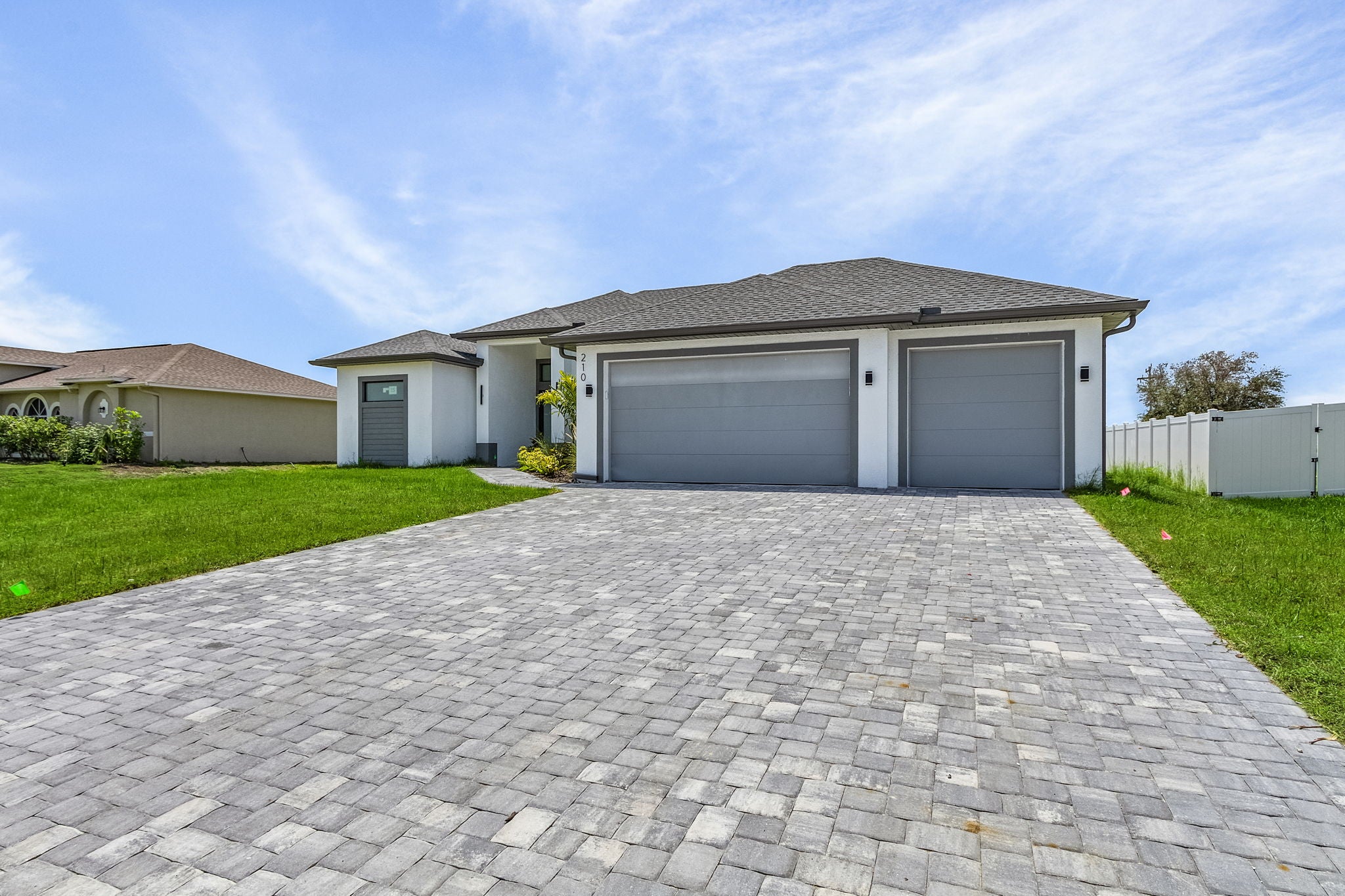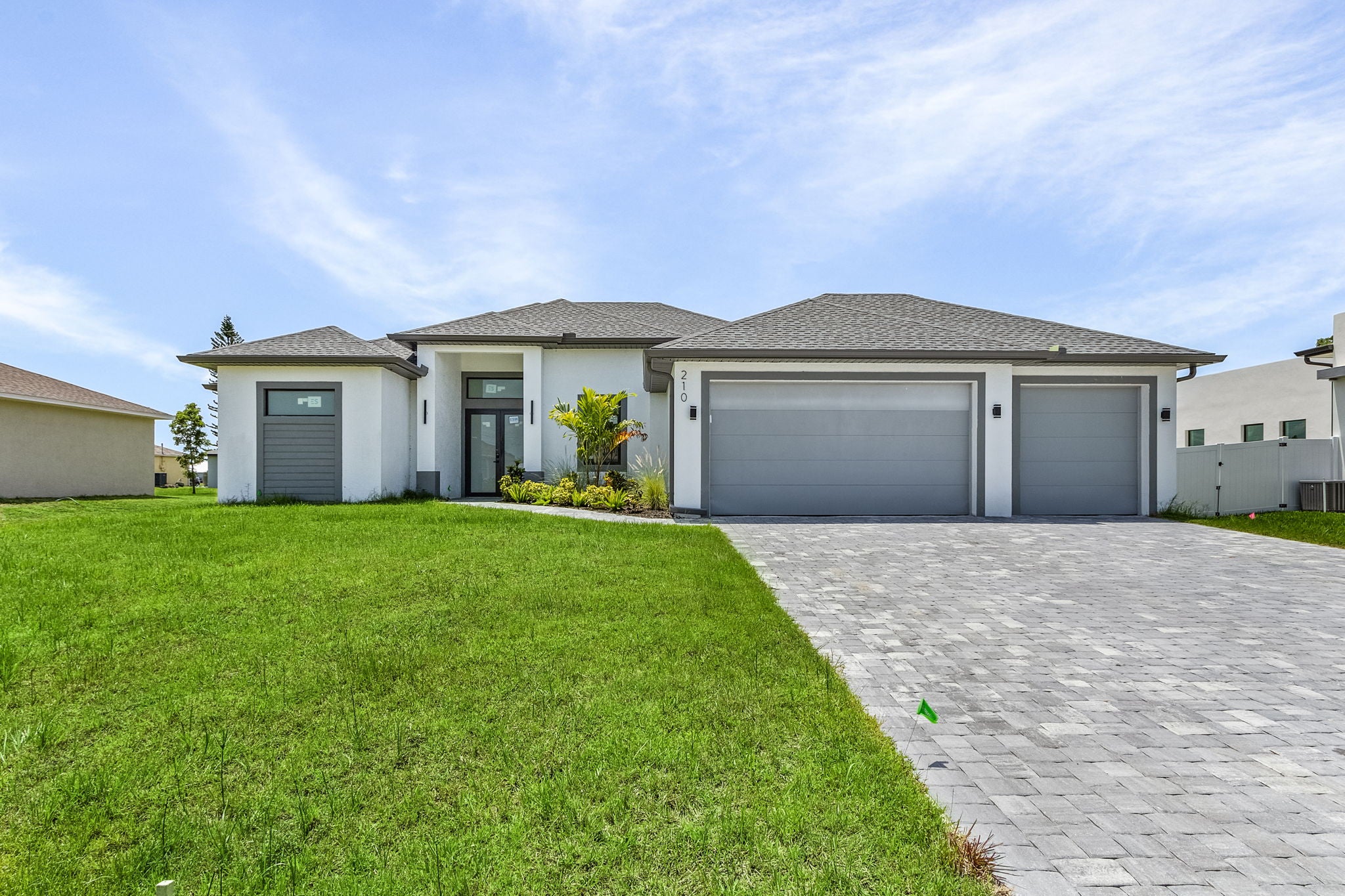 Experience modern luxury in Cape Coral's most sought-after location with this stunning home. Featuring soaring high ceilings and exquisite finishes, the open-concept design offers seamless flow and abundant natural light. The state-of-the-art kitchen boasts top-of-the-line appliances and sleek cabinetry, perfect for culinary enthusiasts. The expansive three-car garage is ideal for car lovers, providing ample space for vehicles and storage. Nestled in a beautifully landscaped setting, this home is the epitome of elegance and sophistication.